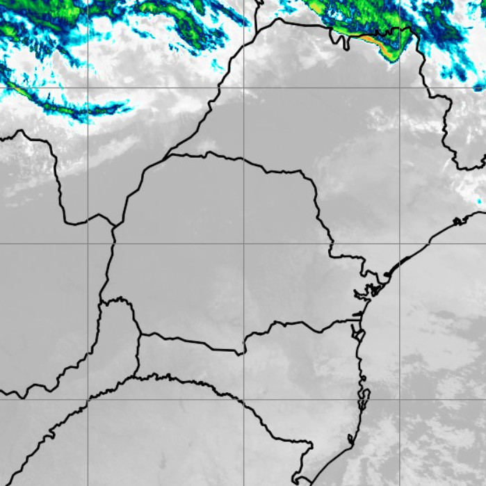 Com temperaturas próximas de 20 °C em áreas do extremo oeste e também na faixa litorânea, o sul do estado se destaca com valores mais baixos, em torno de 10 °C. Não há registro de chuvas significativas na região, embora alguns chuviscos ocasionais possam ocorrer em áreas de serra no leste.