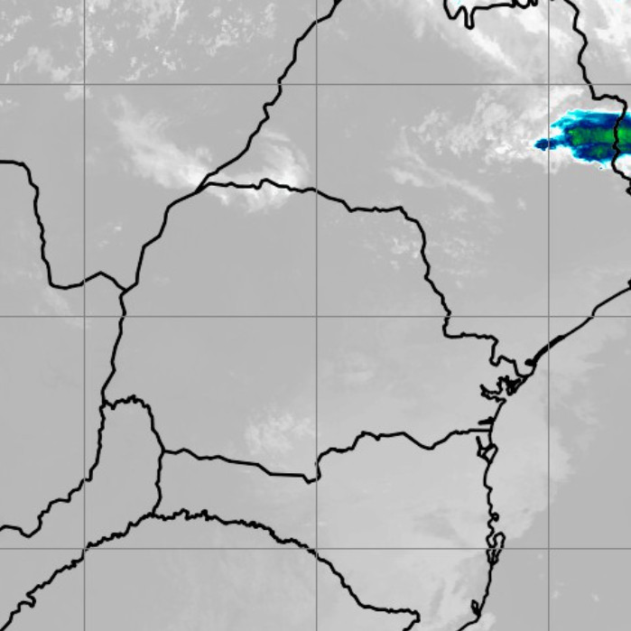 A segunda-feira inicia com grande nebulosidade e persistência das chuvas no Paraná. Os eventos não apresentam mais nível de severidade, mas as pancadas de chuva continuam ocorrendo nas regiões com maior desenvolvimento vertical das nuvens, como em Cândido de Abreu, Telêmaco Borba e Ivaí. Até o momento, os maiores acumulados de precipitação registrados atingiram 45,2 mm na estação de Cândido de Abreu e 39,6 mm em Ubiratã.