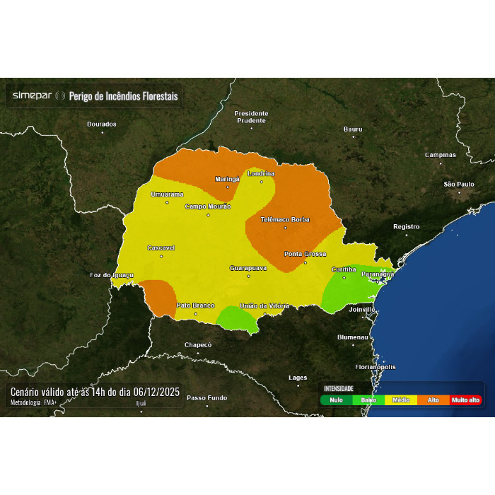 A segunda imagem demonstra o risco de incêndio florestal sobre o Paraná.