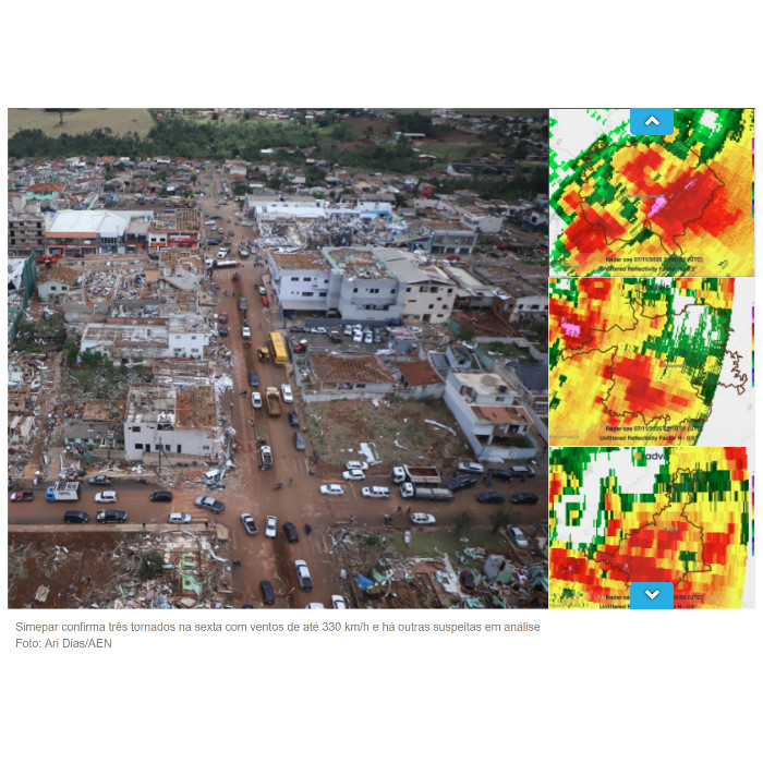 Nesta manhã a equipe de meteorologistas do Simepar confirmou a ocorrência de mais dois tornados no interior do Paraná durante as tempestades da noite de sexta-feira (07), além de finalizar a classificação do tornado que já havia sido confirmado no município de Rio Bonito do Iguaçu. Os outros tornados aconteceram em Turvo e Guarapuava. As análises foram feitas, além do trabalho em cima dos radares, com vídeos, sobrevoos e vistorias em solo. A equipe técnica segue realizando estudos e análises de outras ocorrências suspeitas. Confira o realese e também esse comunicado em vídeo nas nossas redes sociais.