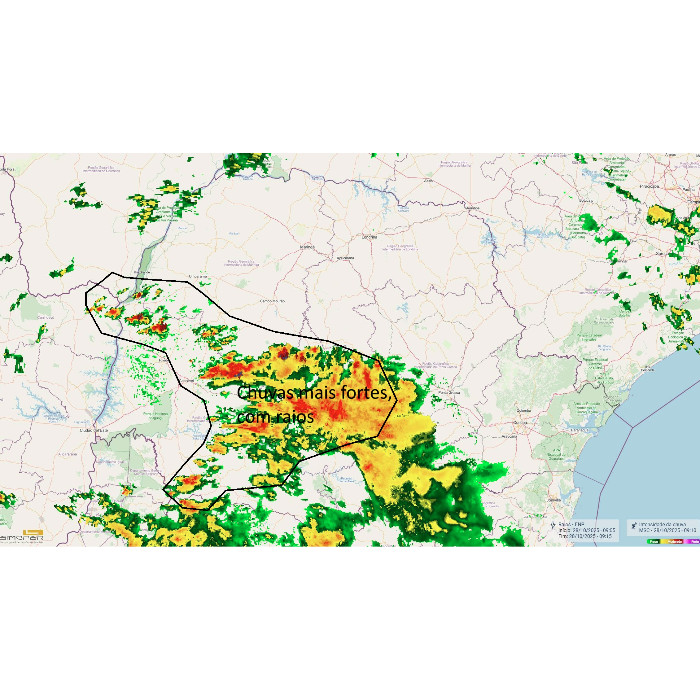 Nesta madrugada, com o afastamento do sistema de baixa pressão em direção ao Oceano Atlântico, as instabilidades sobre o Paraná reduziram. O eixo do sistema se alinhou ao estado de São Paulo, favorecendo o aumento da instabilidade atmosférica no território paulista, inclusive com ocorrência de temporais localizados.